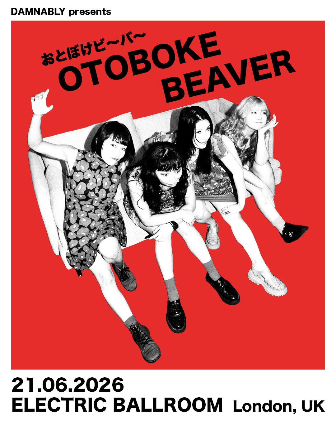 Self-describing as a “knock-out or pound cake” band, Otoboke Beaver are a punk-rock-garage quartet formed in 2009 at University in Kyoto, Japan. Their off-kilter, viciously melodic charm, incredible musicianship, and command of a stage make for a thrilling and unmissable live act.