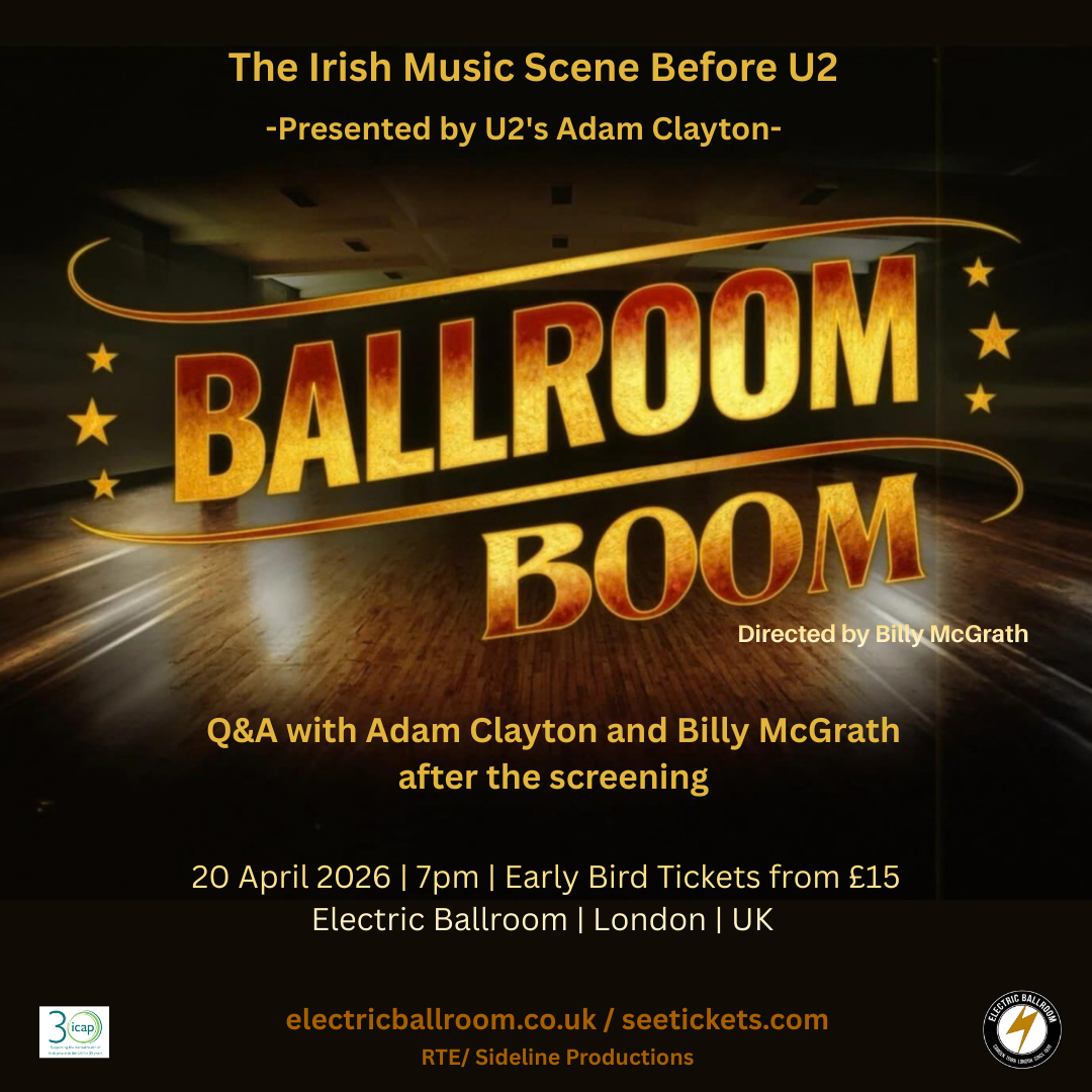 In 2026, Ballroom Boom has been updated with Adam delving deeper into how U2 and other Irish artists benefitted from the musical roots planted by the more progressive showband musicians, managers and promoters with a wide range of guests including archive of Dickie Rock and Brendan Bowyer plus interviews with Paul Brady, Phil Coulter, Linda Martin, Ronan Collins, Eileen Reid, The Saw Doctors, Barry Devlin, Jim Lockhard, Bob Geldof, The Mary Wallopers and many more. Ballroom Boom is produced and directed by Billy McGrath, who previously has helmed screened screen projects with U2, The Boomtown Rats, Clannad, David Bowie, The Pogues and the World Cup Irish soccer team of Italia ’90.