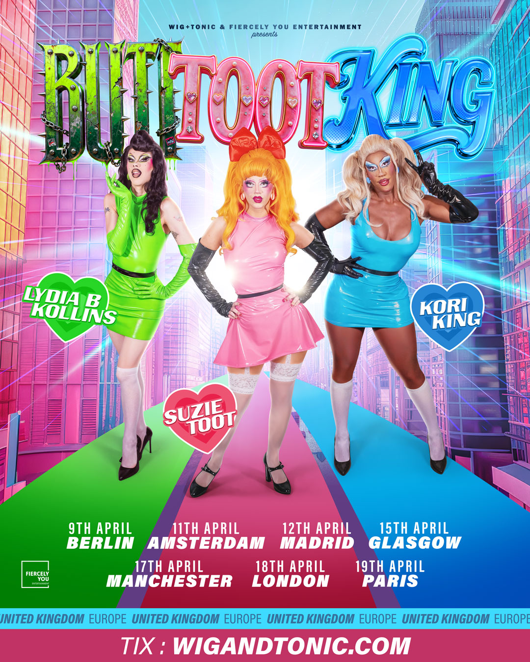 Get ready! From RuPaul’s Drag Race Season 17, it’s Kori King, Lydia B Kollins & Suzie Toot in BUTT TOOT KING — the wildest, most unhinged drag show ever! Expect scandal, stupidity, and show-stopping stunts. Buttholes, Tooters & Kingdom… your reign starts now!