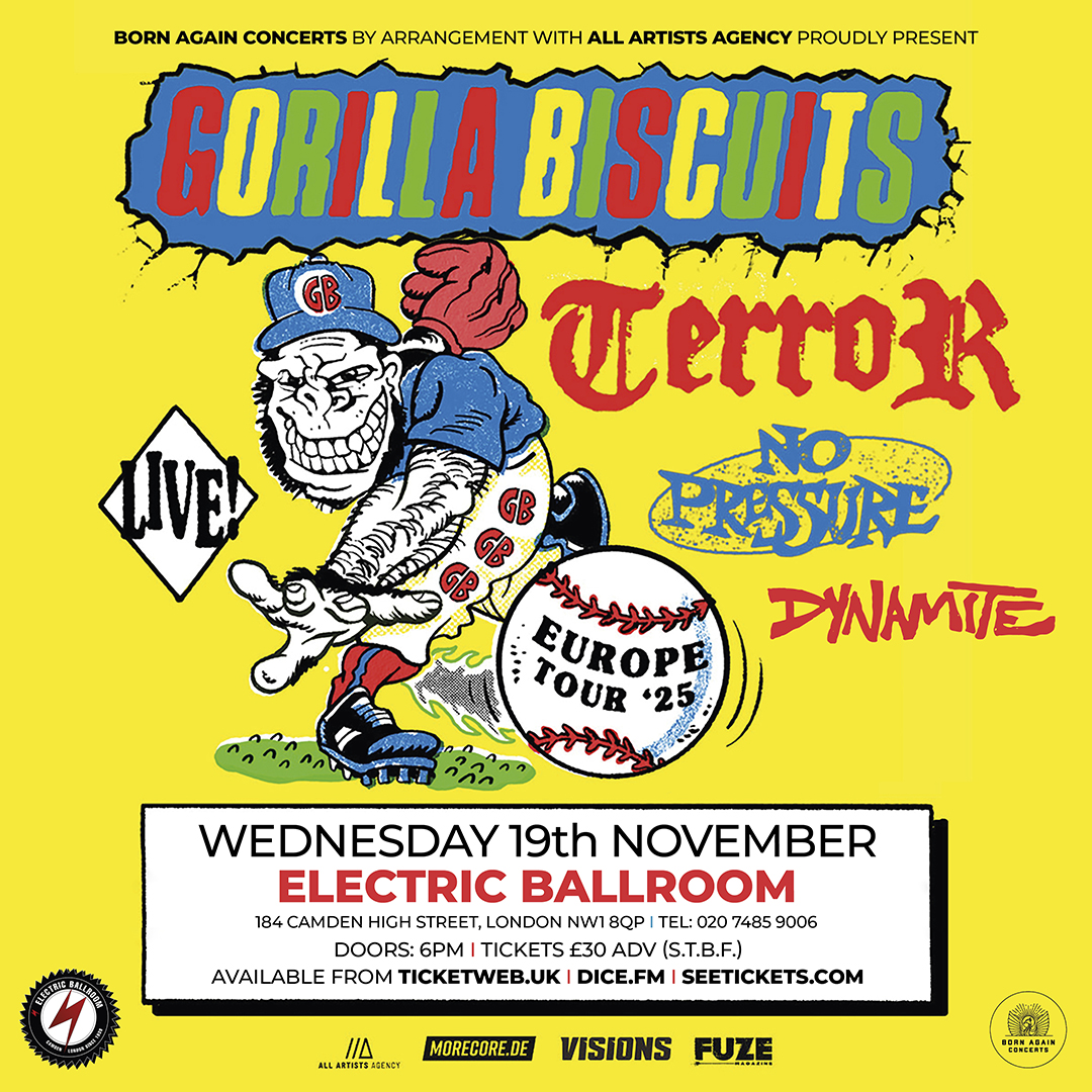 Terror from Los Angeles have been one of the most important modern hardcore bands for over 20 years. Since they started in 2002, they became famous all over the world for their brutal live shows and strong attitude. With albums such as “Keepers of the Faith” and “One with the Underdogs”, they have shaped the scene time and time again. They combine old-school aggression with unwavering loyalty to the scene, making them the ideal band to perform with Gorilla Biscuits on this tour.